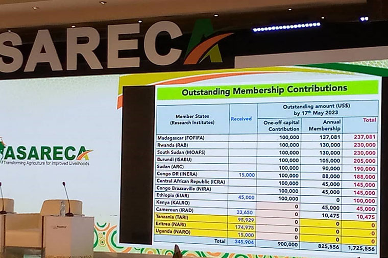 According to the executive director of ASARECA, Dr Enock Warinda, as of today Thursday, the current annual membership contribution arrears are more than $ 1.8 million (about Shs 6.7bn) for 12 countries. Only three countries; Tanzania, Eritrea, and Uganda have fully paid their fees.