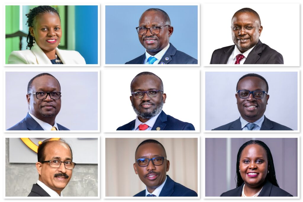 CEOs of Uganda’s Most Hardworking Banks – Clockwise from the top: Finance Trust Bank’s Annet Nakawunde Mulindwa; Centenary Bank’s Fabian Kasi; KCB Bank Uganda’s Edgar Byamah; PostBank Uganda’s Julius Kakeeto; Cairo International Bank’s Sylvia Jagwe Owachi (Ag. Managing Director); Housing Finance Bank’s Michael Mugabi; Bank of Baroda Uganda’s Shashi Dhar (Managing Director & CEO); Stanbic Bank Uganda’s Mumba Kalifungwa; and Absa Bank Uganda’s David Wandera. These leaders are steering Uganda’s most dynamic banks, putting deposits to work for the real economy.